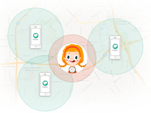 산책이나 놀이공원에서 아이를 찾기 위해 큰 소리를 외칠 필요도, 애완 동물을 잃어버릴 염려도 없어집니다. 여러분이 FAMY에서 Safety Zone을 설정하면 일정 범위를 벗어날 경우 LINK에서 신호를 보내 이탈에 대해 알려줍니다.